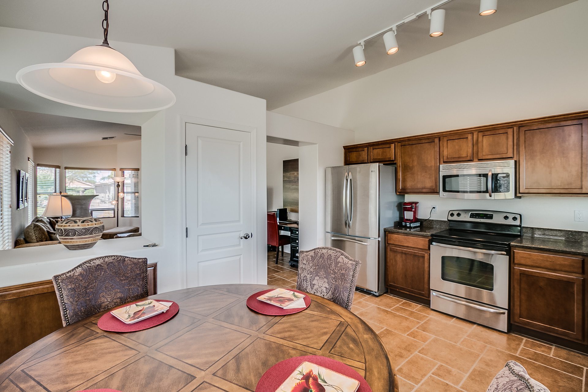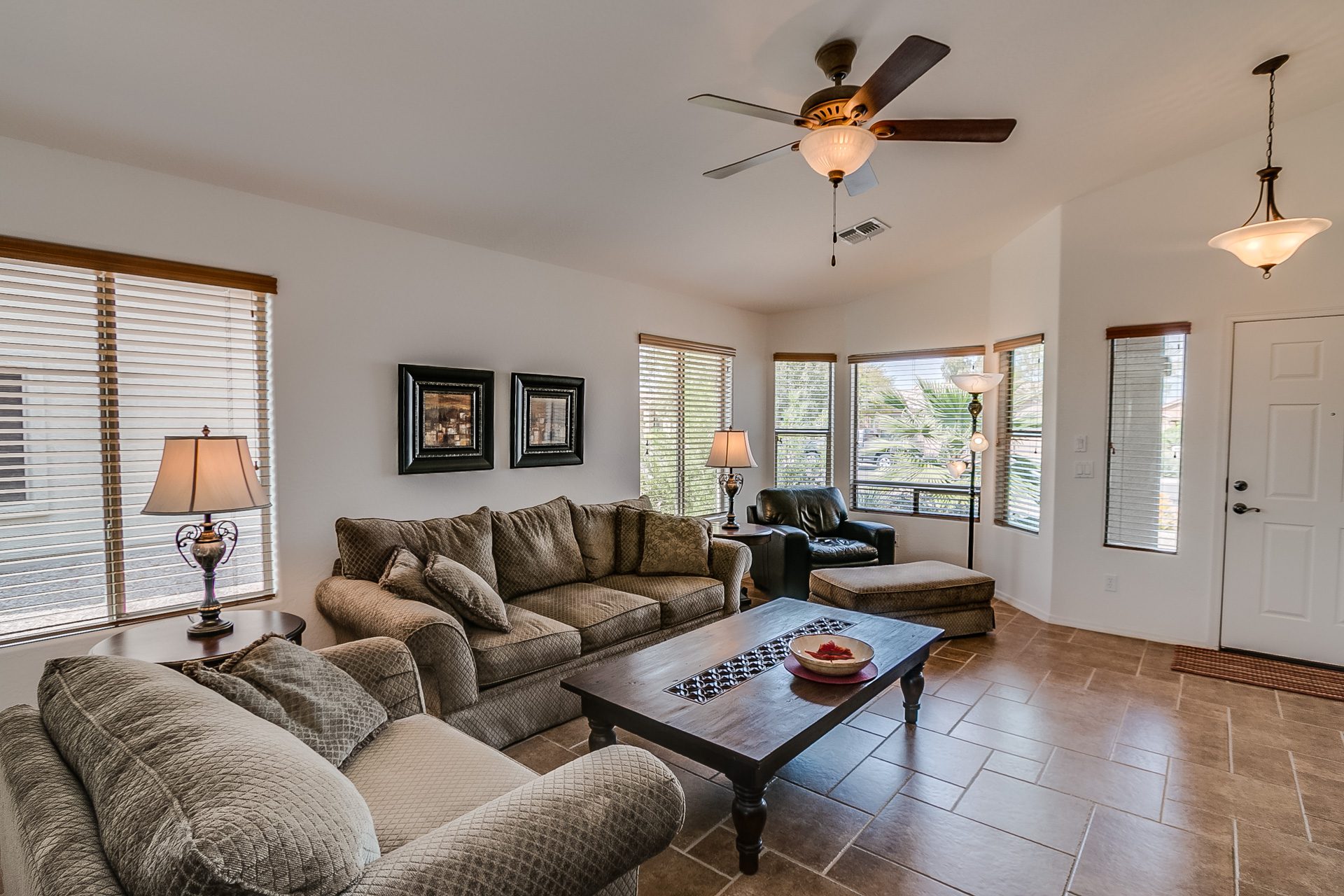 Enchanting! Feels like home! This home features 2 bedrooms, 2 bathrooms, tile & carpet flooring, ceiling fans, blinds throughout, maple cabinetry w/crown molding, engineered stone kitchen counter-tops. stainless steel appliances, water softener, RO system, security door, sun screens, R38 ceiling insulation, new Trane AC unit, easy care landscaping, South facing extended back covered patio, gorgeous mountain views and so much more. Please call today to schedule your private showing.