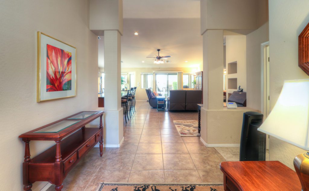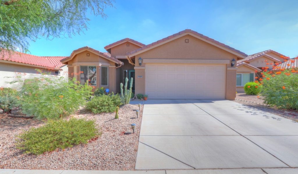 Gorgeous 104 model home in the popular Mission Royale Active Adult Golf Course Community. Home features 2 bedrooms, 2 bathrooms, new SPRAY FOAM insulation, 4′ extended garage, large tile & carpet flooring, Hunter Douglas blinds, recessed lighting, ceiling fans, engineered stone counter-tops, lowered kitchen island, pull outs, water softener & whole house RO, bay windows in dining & guest room, master bath has dual sinks w/raised vanity, garage door is insulated w/ cabinets & work bench. South facing backyard has pergola, extended paver patio, outdoor ceiling fan, water feature, mature landscaping, orange & mandarin trees and so much more. Please call today for your private showing!