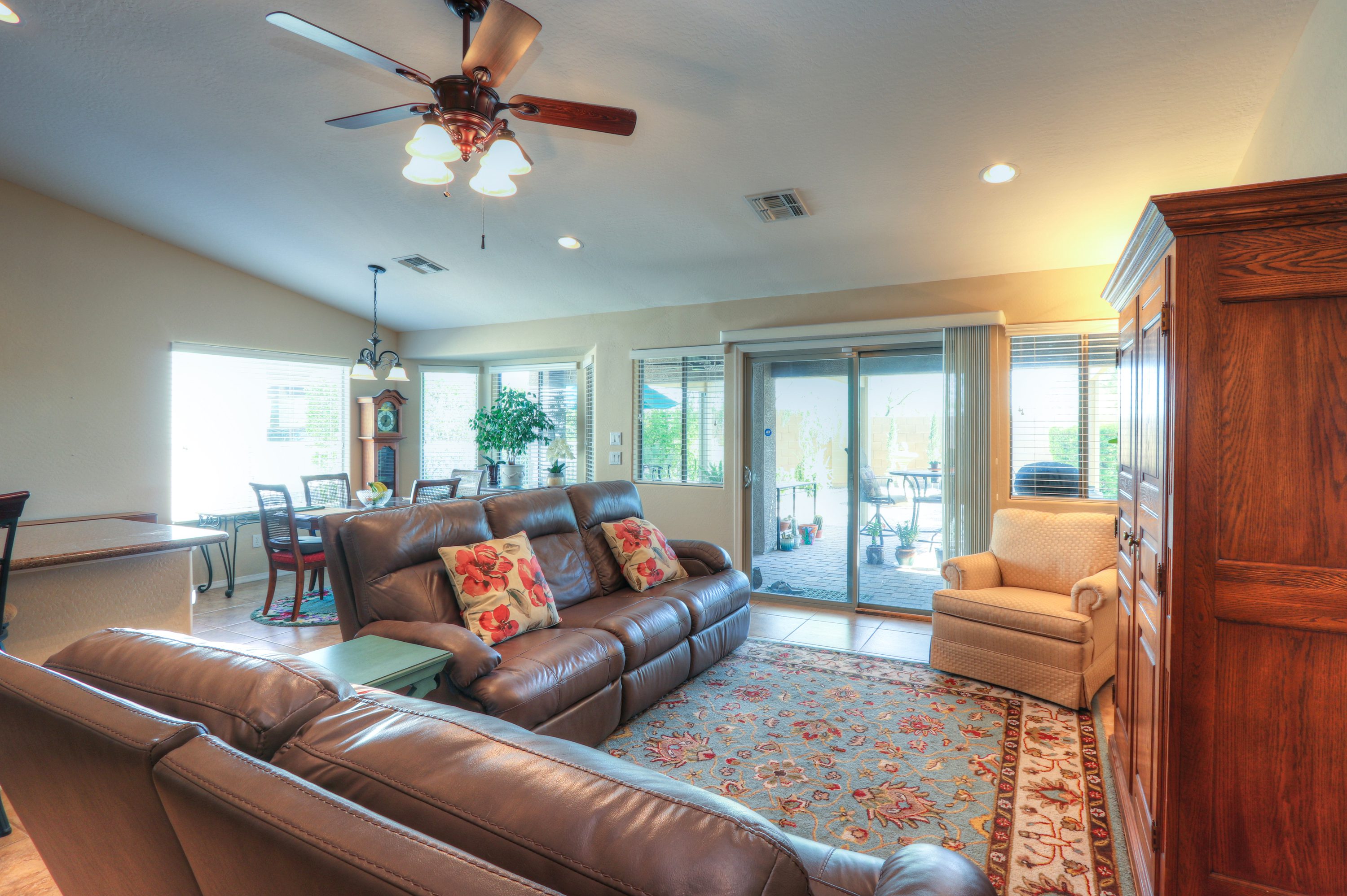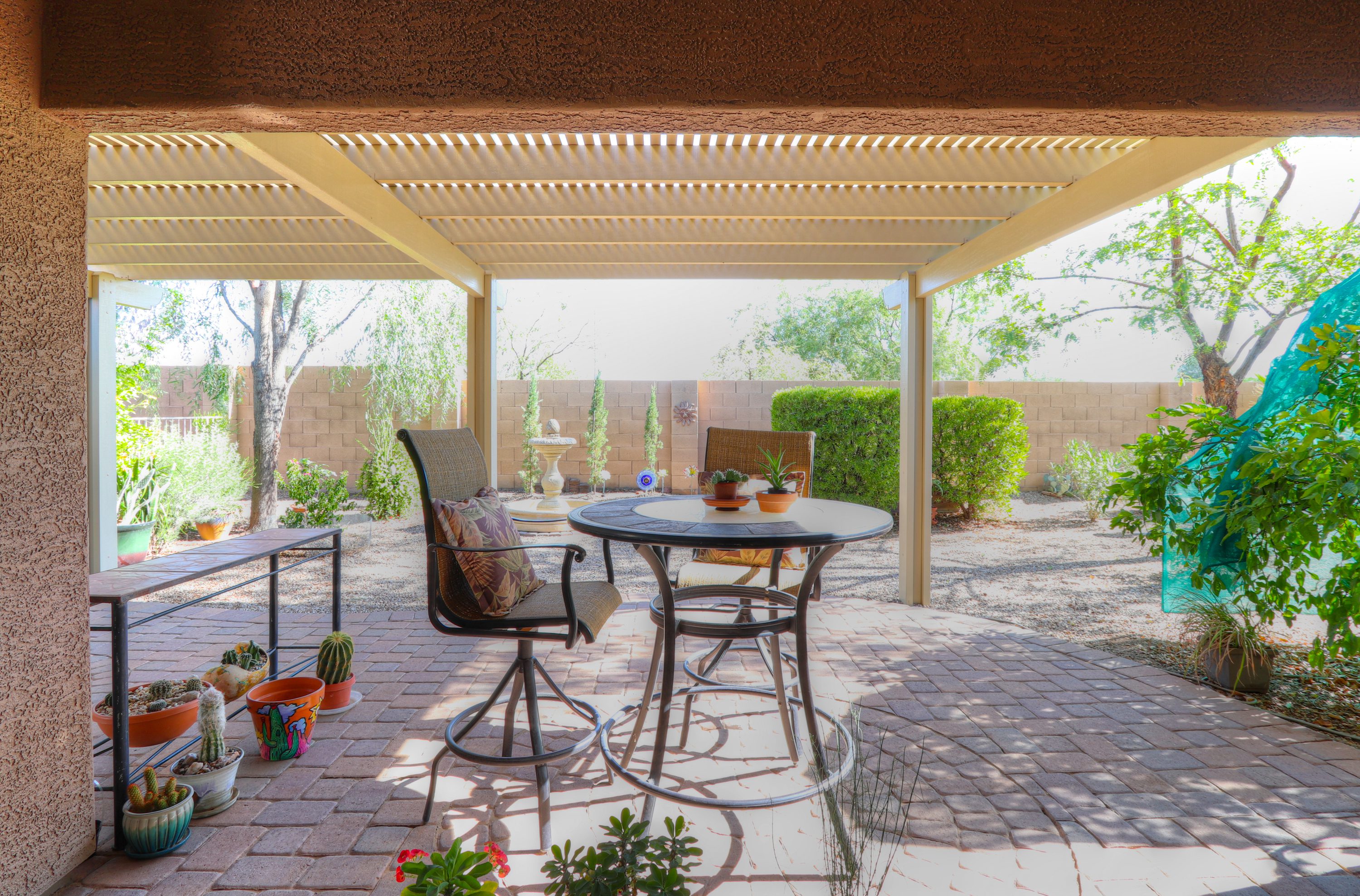 Gorgeous 104 model home in the popular Mission Royale Active Adult Golf Course Community. Home features 2 bedrooms, 2 bathrooms, new SPRAY FOAM insulation, 4′ extended garage, large tile & carpet flooring, Hunter Douglas blinds, recessed lighting, ceiling fans, engineered stone counter-tops, lowered kitchen island, pull outs, water softener & whole house RO, bay windows in dining & guest room, master bath has dual sinks w/raised vanity, garage door is insulated w/ cabinets & work bench. South facing backyard has pergola, extended paver patio, outdoor ceiling fan, water feature, mature landscaping, orange & mandarin trees and so much more. Please call today for your private showing!