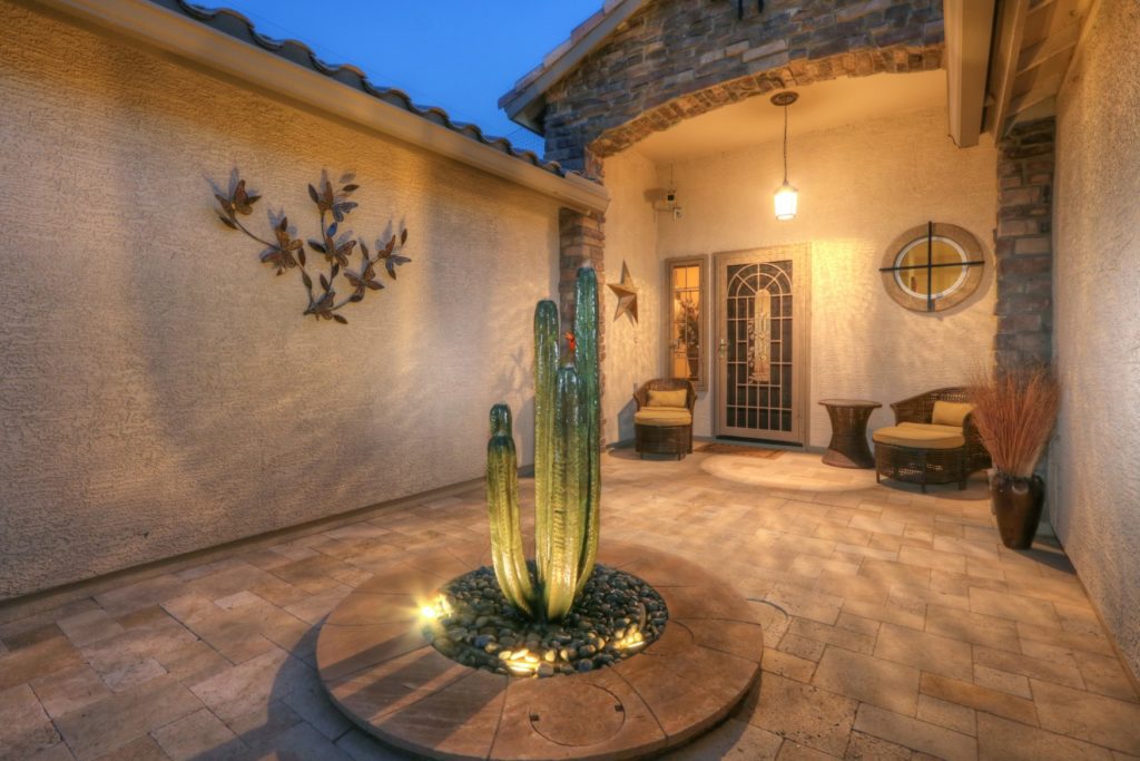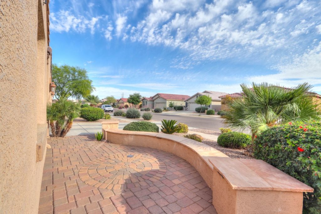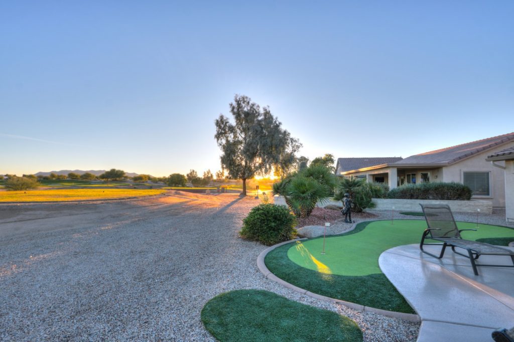 PRICED TO SELL! Move up to Your Dream Golf Course Home… In the beautiful Mission Royale Active Adult Community in Casa Grande Welcome to resort living located off the Meritage Signature hole #8, with exceptional southeast fairway, water and mountain views. This is paradise. Elegance and warmth are evident when you approach the front entry courtyard, beautifully landscaped with palms and travertine stone set around a unique custom water feature. The open gourmet kitchen features, granite countertops, drop in sink, and upgraded tile back-splash, raised panel cherry cabinets with pullouts and upgraded whirlpool GOLD stainless steel appliances. Both the master suite and guest bath are complete with dual sinks, raised vanities and comfort height elongated toilets