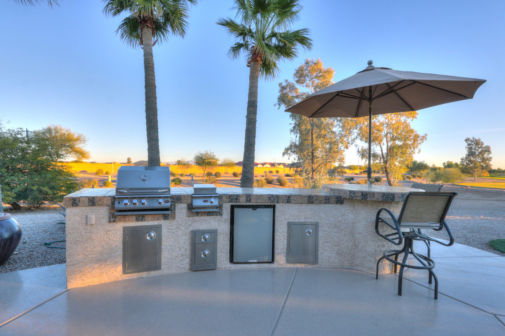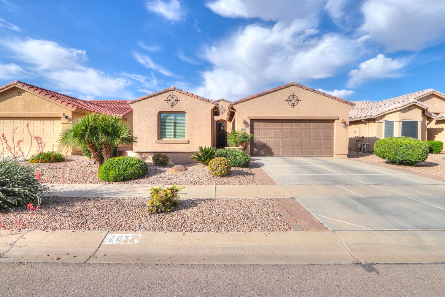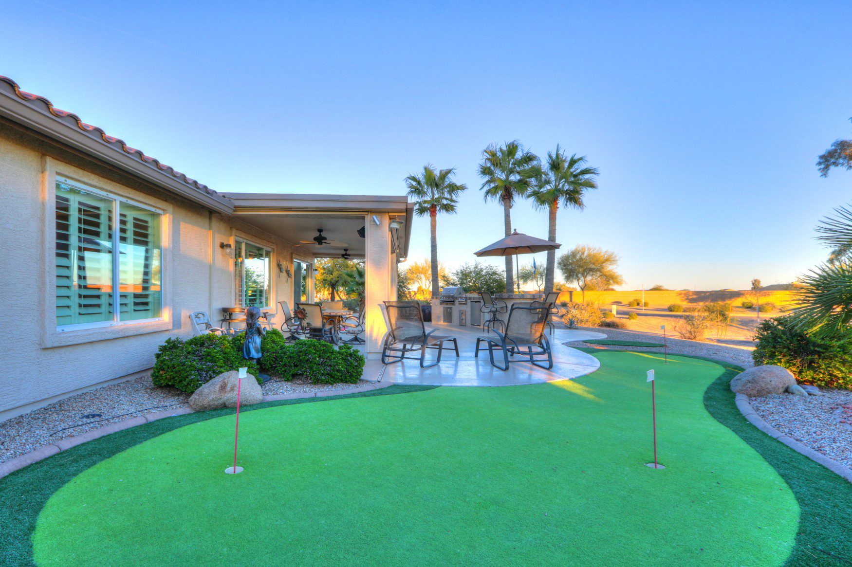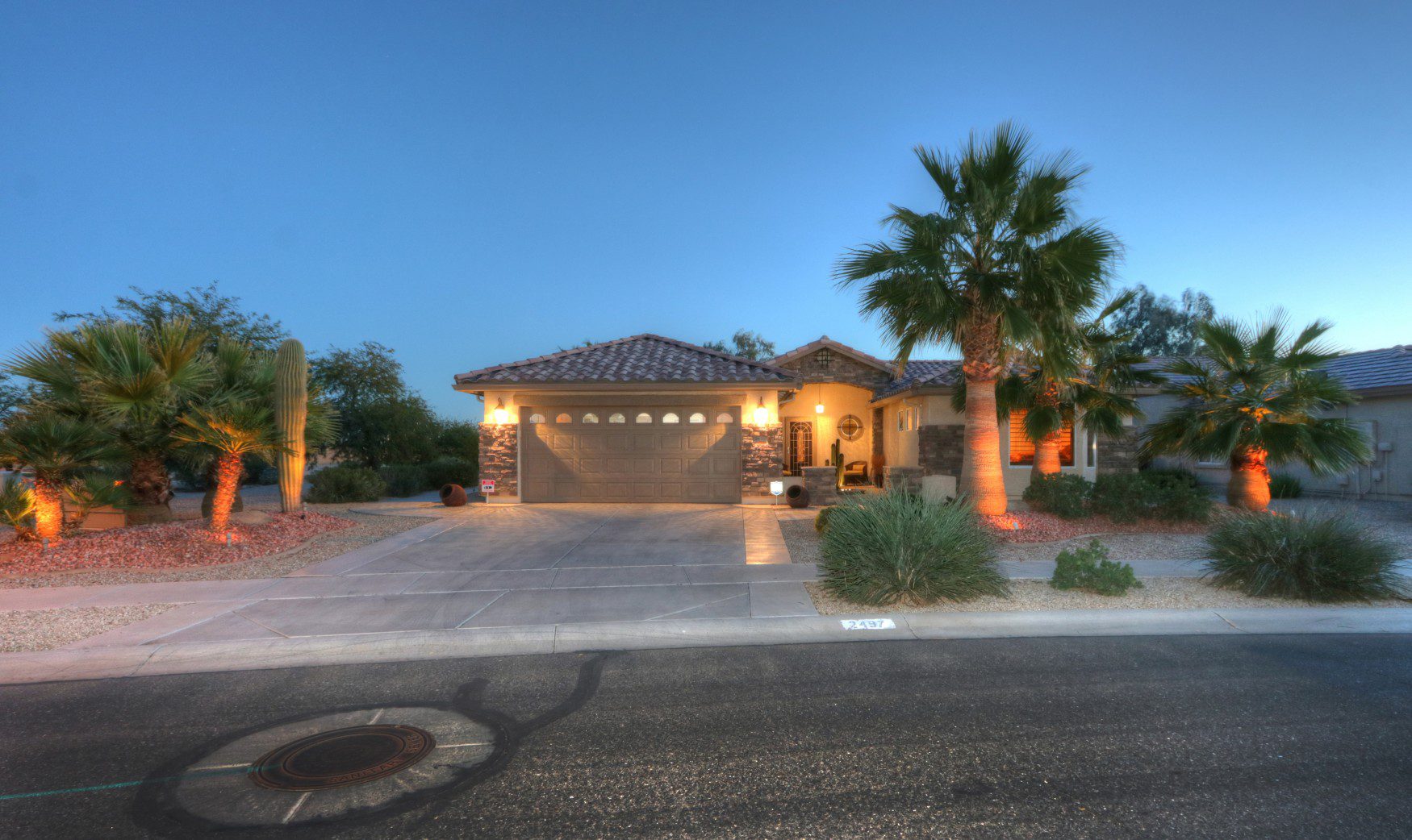 PRICED TO SELL! Move up to Your Dream Golf Course Home… In the beautiful Mission Royale Active Adult Community in Casa Grande Welcome to resort living located off the Meritage Signature hole #8, with exceptional southeast fairway, water and mountain views. This is paradise. Elegance and warmth are evident when you approach the front entry courtyard, beautifully landscaped with palms and travertine stone set around a unique custom water feature. The open gourmet kitchen features, granite countertops, drop in sink, and upgraded tile back-splash, raised panel cherry cabinets with pullouts and upgraded whirlpool GOLD stainless steel appliances. Both the master suite and guest bath are complete with dual sinks, raised vanities and comfort height elongated toilets