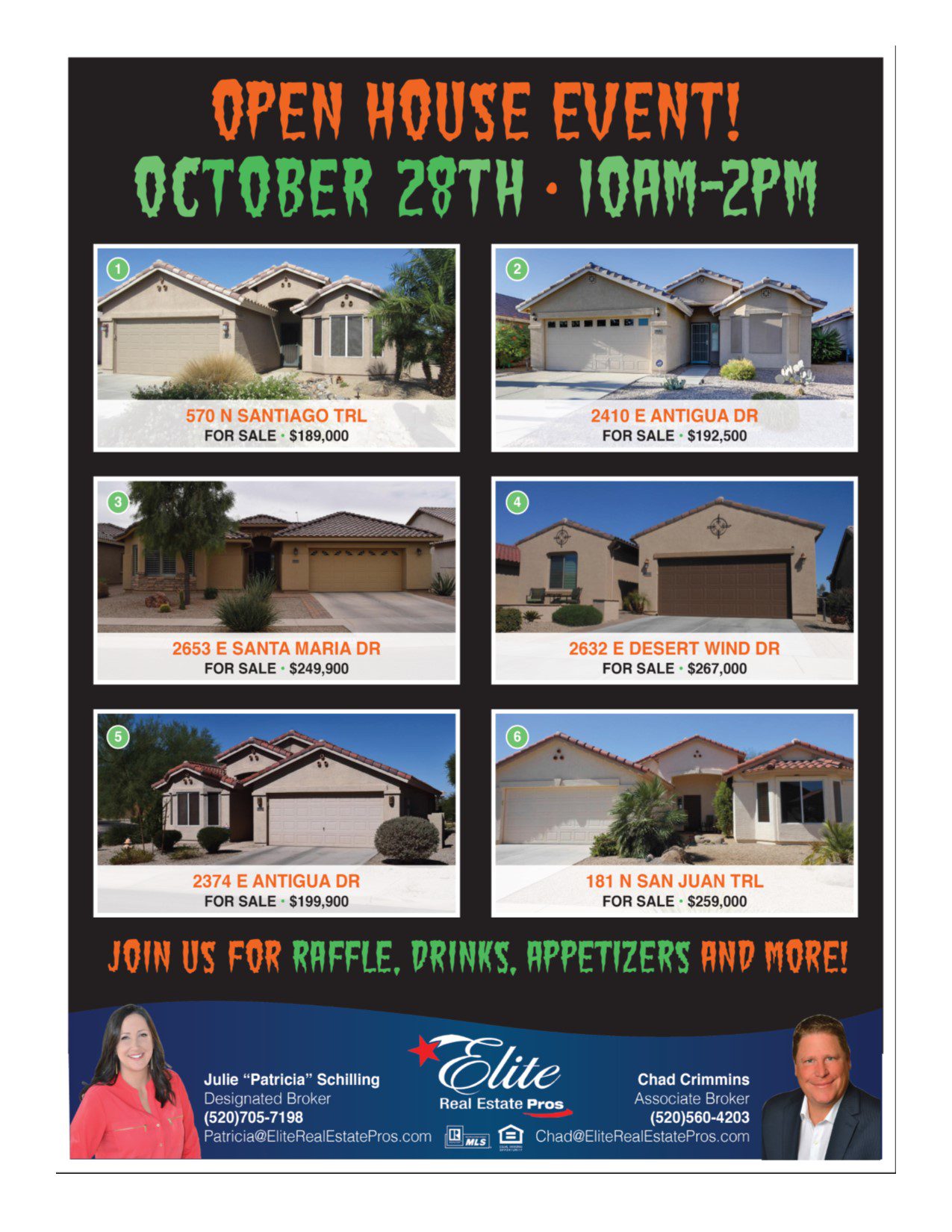 Open House Event! Come Join us Friday October 28, 2016 from 1oam-2pm. There will be a Raffle, Drinks, Appetizers and More. There will be 6 homes for you to view! Don’t miss out on all the FUN! See you There!