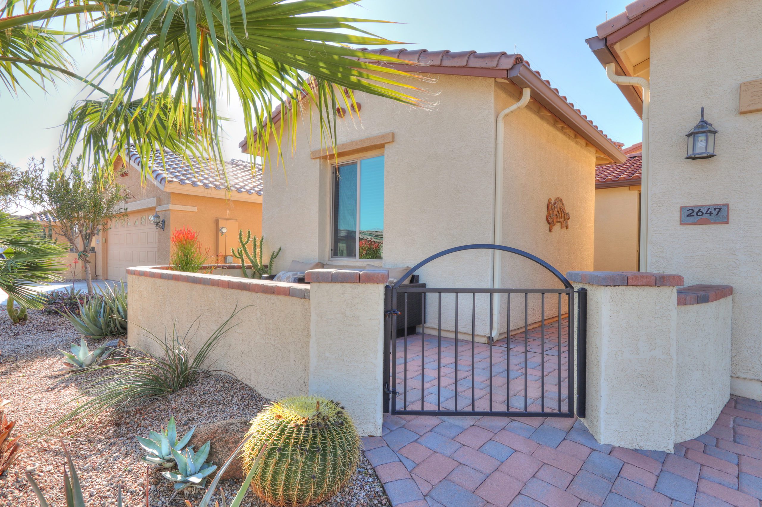 This Energy Efficient home has everything you’ve dreamed of and more! Casa Del Sol 1745 sq ft Model home w/ 2 bedrooms 2 bathrooms and a den w/storage closet. Just some of the latest Energy saving features included are spray foam insulation, full solar with 150 gallon water heater, and low E windows. Inside you will see custom touches throughout, a great room floor plan w/ upgraded kitchen, staggered cabinetry, granite countertops, tiled back-splash, spacious master suite with his & her walk in closets, raised bathroom vanity with dual sinks & drawers, extended garage w/water softener & utility sink. Out back enjoy the South facing extended back patio that features Pergola, ceiling fan, pavers, block & wrought iron fencing, & lush landscaping for extra privacy. This is truly a must see!