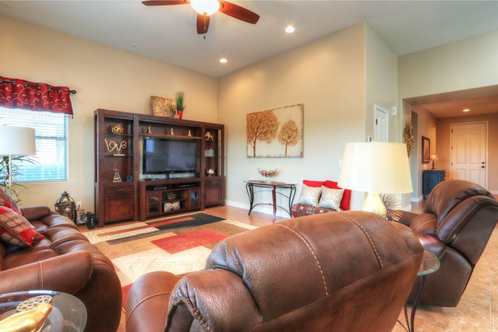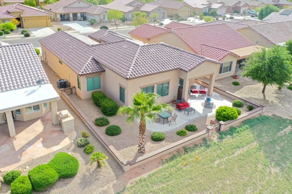 Breathtaking! This turn Key home on the 17th Fairway features 2 bedrooms, 2.5 baths, den, 20” tile & carpet flooring, recessed lighting, ceiling fans, engineered stone counter tops, RO, water softener, 42” cabinets with crown molding & pull outs, in suite bedroom and bathroom for your guests, master w/his & her closets, raised bathroom vanities, dual sinks, extended length garage w/epoxy flooring & built in cabinets. Outside features include South facing courtyard at entry, security door, extended back patio with some of the best mountain & golf course views in Mission Royale. Please call today to schedule your private showing!